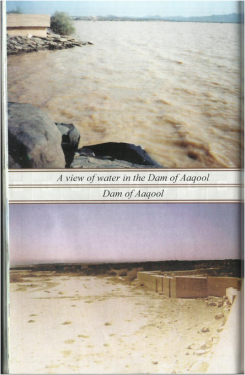 The Dam of Aaqool & the Fire of Hijaz The dam is an important recreational area of the people of Madinah. After rainfall, the valley of Qanaat flows and millions of cubic meters of its waters gather at the Aaqool Dam. It is a fascinating view; water as far as the eye can see. Experts say that Aaqool has the largest store of underground water in Madinah. The formation of the Aaqool Dam is linked to the historically significant "Fire of Hijaz". The Prophet sallallaahu 'alayhi wasallam professed of the Fire of Hijaz, which was witnessed in 654 A.H. This fire threw volcanic lava and rocks into the Valley of Qanaat, blocking the water flow and forming a natural dam. In 690 A.H. water gradually eroded through the dam and the valley once again began to flow. Effects of the Fire of HIjaz; basalt and black rocks are still visible today at the site of the dam. Water in the Dam of Aaqool Click on Picture to enlarge The Fire of Hijaz Allah's Apostle said, "The Hour will not be established till a fire will come out of the land of Hijaz, and it will throw light on the necks of the camels at Busra." Sahih Bukhari Hadith no. 7118 He further stated; "The Hour will not be established till a valley of the land of Hijaz will not flow with fire, throwing light on the necks of the camels at Busra." Fath ul Bari 13/80 Busra (Vowel led "u" not "a") i.e. a city between Tabuk and Syria, not the city of Basra in Iraq. Allamah Samhoudi states, "The fire mentioned in this hadith appeared in 654 A.H. This fire was visible from Makkah, Yanbu, Taimaa and Busra. This proved that it was the very 'Fire of Hijaz' which the Prophet sallallaahu 'alayhi wasallam had foretold so that the people may take heed. Allamah ibn Hjar states, "The fire referred to in this hadith is the one witnessed on the outskirts of Madinah as is explained by Qurtubi and others" Allamah Qastalani (who was in Makkah at the time of the fire) states, "On the day of Friday in the afternoon this fire rose and the skies were blackened with its smoke and darkness prevailed. By night its flames could be seen. The fire looked like a big city south east of Madinah. It moved to Banu Quraidhah then spread to the east and finally went into Waadi Qanaat. It moved on the surface of the ground pulverizing and melting mountains and rocks which stood in its path. Its flames were like towering mountains and extended ranges, throwing molten rocks in to the air like waves of the sea. It would move like a storm in the ocean. Its sound was like thunder of lightening. It lasted for three months so that people may take heed and fear the fire of the Hereafter. This fire was visible from Makkah, Yanbu, the mountains of Sayah and Taimu, and Busra. It drove a large river of molten rock into the waadi which gathered at its end forming a natural dam. When water flowed in to the waadi it gathered at this dam in huge quantities until it formed a sea of water as far as the eye could see. In 690 A.H. the force of water gradually broke its way through the dam making it flow normally once again". The Saudi Government built a number of dams on the river of Qanaat at Aaqool to efficiently utilise its water for agriculture and to protect Madinah from flood in case of over flow. "Pictorial History of Madinah Munawwarah" by Dr. Muhammad Ilyas Abdul Ghani