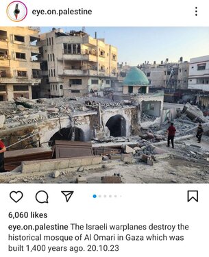 Places of worship not safe One of the oldest churches in Gaza is the "Church of St. Porphyrius," which is an ancient Orthodox Christian church. The construction of this church dates back to the Middle Ages, specifically the 15th century. The Church of St. Porphyrius is considered an important historical landmark in Gaza and a site for prayers and religious activities. www.instagram.com/p/CynGjz2IwAB/ The Israeli warplanes destroy the historical mosque of Al Omari in Gaza which was built 1,400 years ago. 20.10.23