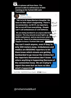 Message from Abu Ubaida, the Izzideen al-Qassam Brigades spokesperson Speaking live on Saturday, Abu Ubaida, the Izzideen al-Qassam Brigades spokesperson, said that “Israeli bombing has killed 50 of their captives so far”, and that “Israel knows the cost of freeing their hostages”. “The cost of the hostages is to free all Palestinians from Israeli jails,” he said. Abu Ubaida said that the war was a “turning point in history and in the freedom of Palestine”. “We reiterate to Israel, who are threatening daily about a ground invasion, we wait for you, we will teach you and the world what true strength looks like. We will meet you with strength you cannot imagine, we have embarrassed you in front of the world.” www.instagram.com/p/Cy8tnxiIqqS/