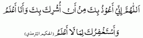 Du'ā for Protection from Shirk and Riyā اے اللہ! میں آپ کی پناہ مانگتا ہوں، آپ کے ساتھ جانتے ہوئے شرک کرنے سے، اور آپ سے مغفرت چاہتا ہوں اُس شرک پر جو میرے علم میں نہیں ہے۔ O Allāh! I Seek Your refuge from committing shirk knowingly, and I seek Your forgiveness from that shirk which I am unaware of. (Al-Hakīm At-Tirmidhī) at-tazkiyah.com