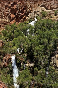 Springs gushing forth from the mountains Allaah has placed massive mountains on earth, which are made of solid rock and which tower thousands of metres above the surface of the earth. While the mind will be unable to conceive the presence of any water there, Allaah causes springs of crystal clear water to gush forth from these mountains high up. These springs then grow as they trickle down the slopes of the mountains and gradually become streams and rivers. It is only the great power of Allaah that can cause water to flow from hard rock. (Madrasah in Just 5 Minutes - Mufti A.H.Elias May Allaah protect him) -