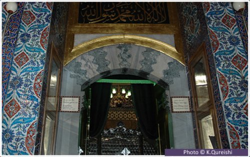 Abu Ayyub Ansari (Radhiyallahu 'anhu) His full name was Khalid ibn Zayd ibn Kulayb and he was from the Banu Najjar. He was a great and close companion of the Prophet sallallaahu 'alayhi wasallam. He was known as Abu Ayyub (the father of Ayyub). This is the approximate spot where existed the house of Abu Ayyub Ansari (may Allah be pleased with him). IslamicLandmarks This is where the Prophet (peace and blessings of Allah be on him) initially stayed for several months on his migration to Madinah, while Masjid-e-Nabwi and the adjoining rooms for his wives were being built. Buried in Istanbul His grave lies in Istanbul where he was honoured with martyrdom during the siege of Constantinople in the caliphate of Muawiyah (may Allah be pleased with him) in 48 AH. IslamicLandmarks Just beyond the city walls and alongside the Golden Horn is the district of Eyüp, named after the tomb and mosque complex built around the burial site of Abū Ayyūb al-Anṣārī (d. 52/672). Eyüp Sultan Camii Islamicana (Click on picture to enlarge) Tomb of Abu Ayyub Ansari RA *Note that this entry has been shown for information purposes only. On no account should anybody pray towards a grave or seek supplication through them as this is tantamount to committing shirk, associating partners with Allah (Glorified and Exalted is He). IslamicLandmarks