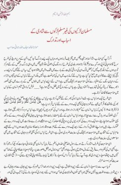 Translation: The causes of marriage of Muslim girls with non-Muslim boys and its prevention If you are present in a civil and gracious gathering and an old man arrives who is wearing a skullcap, the colour of which is just like that of red chilli. His shirt is dark green in colour and dhoti is yellow just like turmeric, then that man would probably be the centre of attention for everyone. And it is not far fetched that some people would start doubting his mental health. The reason is not that such three-coloured dresses are prohibited by law or religion but because all three components of dress do not match and complement each other in terms of colour. That's why upon seeing such a man, it will come to mind that this is an uncivilized man from some rural area or he is not mentally fit. Therefore good taste demands that a man wears clothes which compliment each other. Similarly there is another dress which a man selects for himself for his entire life. This dress refers to the lifetime companionship which he will acquire after nikah. The Qur'an has declared that husband and wife are dress for each other. هُنَّ لِبَاسٌ۬ لَّكُمۡ وَأَنتُمۡ لِبَاسٌ۬ لَّهُنَّۗ (al-Baqarah 187) because the dress is a secret keeper for the body of human and conceals its weaknesses. It is a companion of winter and summer. It protects him from hotness, cold and rain and it is also a cause of beauty for his body. The husband and wife should also treat each other in the same manner. They should also conceal each others flaws. They should comfort and remain with each other in good and bad times. They should serve as a means of dignity and honour for each other through their personality and character. Therefore just like it is important to look for matching and complimentary characteristics while selecting a dress, similarly while selecting the dress of your life i.e. your spouse, it is important to look for these matching features. Referring to the same thing, Rasulullah صلى الله عليه وسلم said that a man sometimes marries a woman for her dignified lineage, sometimes he looks at her wealth and property amd sometimes he sees her beauty and charm. All these criterias do not ensure success. The fourth criteria is her religious commitment and Rasulullah صلى الله عليه وسلم has guaranteed success for those who use this yardstick. (Sahih Bukhari, Hadeeth number 4700) So the biggest yardstick for a Muslim is righteousness and character. A religiously committed husband cannot love and cannot attain contentment and satisfaction from a non-religious wife and vice versa. Therefore it is encouraged to look for righteousness when selecting a spouse. Though it has not been declared wajib, but it has been encouraged because it is possible that a strayed person can come back to the right path and a sinner Muslim can become righteous. However when the difference is not religiousness but religion in itself, meaning husband believes in one religion and the wife believes in another religion. One does not prostrate before anyone except God, and another prostrates and bow down before every creation then how can they develop understanding with each other? It is possible that in their emotions, two people belonging to different religions can marry each other. However when time will pass and their love will start diminishing, distance will increase, both will start thinking about going back to their real life. They will dispute about children and both will desire that their children start following the religion they believe in. Their children's marriage issues will also be very difficult, because no one from both societies will desire to accommodate them and they will get alienated by both paternal and maternal relatives. The fundamental wisdom behind this command is that it is important for the sustainability and stability of their marriage and for the pleasant relationship amongst the spouses that the husband and wife should have harmony in their thoughts, beliefs and practices. If this harmony does not exist, it will give rise to hatred and the purpose of nikah will not get achieved. Therefore Muslims have always adopted this attitude that they have always been on the forefront in their tolerance, brotherhood and love with non-Muslims. They have progressed in economy, trade and politics in each others companionship. However they have maintained their identity in the case of marriage and they have protected their family's internal environment from strange foreigners. Therefore the environment of their home remained Islamic. Just imagine that your whole family is taking benefit from the blessings of Ramadhan; everyone is fasting during the day and is busy in doing dhikr and reciting the Qur'an, nights are spent in taraweeh and tahajjud, sehri is being eaten before dawn, Allah is being invoked in du'as and on the other hand your daughter in law or your son in law is not familiar with prayer, they aquire the pleasure of food during the day and spend their nights singing bhajan (devotional songs and hymns) so how can they adjust themselves in this house? Alas! This awareness has been declining and the incidents of Muslim and non-Muslim marriage have been increasing. Previously the incidents of marriage of Muslim boys and non-Muslim girls were heard. Obviously this is also not allowed in the Islamic law, but the matter has now gone beyond that. The incidents of Muslim girls going out with non-Muslim boys are increasing. In the past such one or two cases would shake the whole society but when the people of a particular area become used to earthquakes, then these earthquakes stop elevating their heart beats. Similar situation is seen in the Muslim society, it seems like people have become used to hearing such cases. The reality is that it is a very important social issue. It is necessary to ponder over this matter seriously and to find solutions of this problem with wisdom