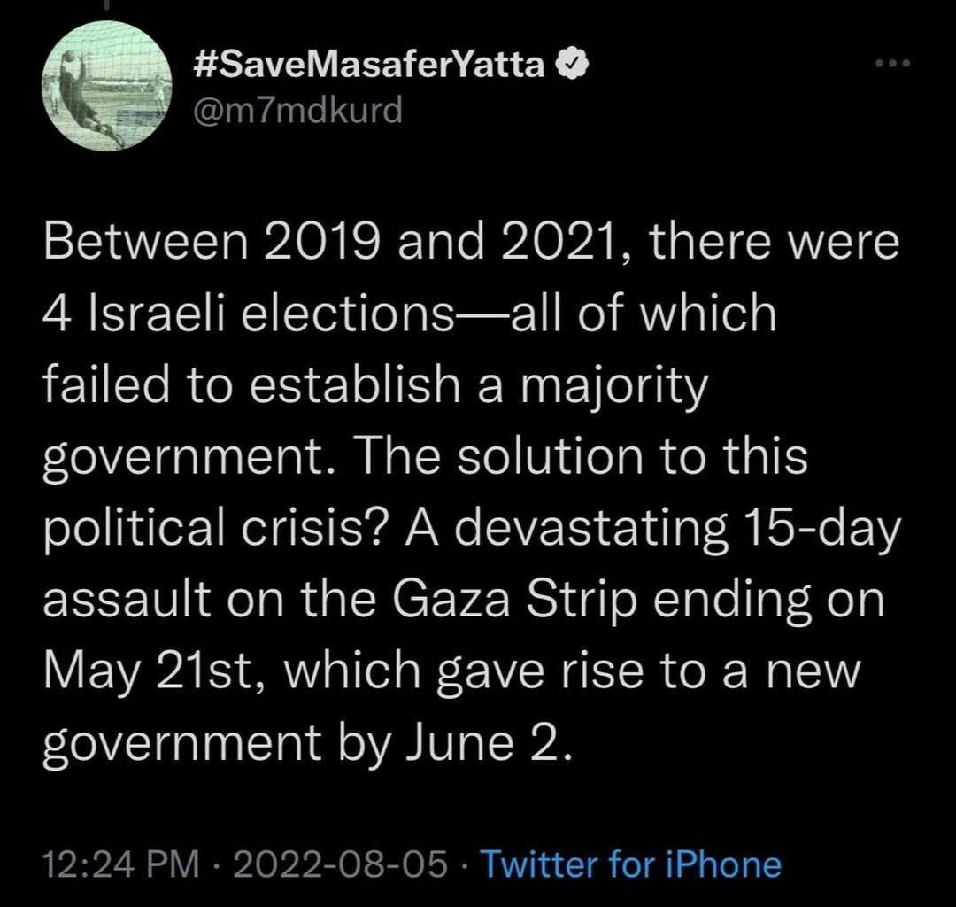 ummtaalib Posted August 7, 2022 Author Report Share Posted August 7, 2022 Bombing Gaza & Israeli elections Link to comment Share on other sites More sharing options...