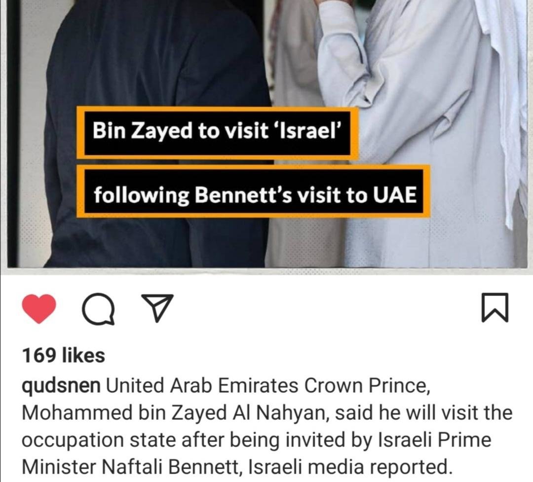 ummtaalib Posted December 14, 2021 Author Report Share Posted December 14, 2021 #Boycott UAE UAE welcomed the Israeli occupation Prime Minister Naftali Bennette in a first official visit to the country yesterday News today: Link to comment Share on other sites More sharing options...